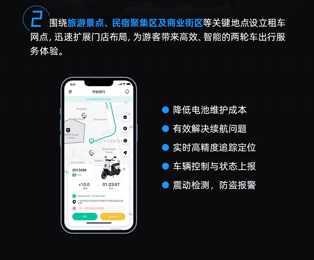 1.? 精準定位?:采用先進的定位技術,確保車輛位置信息的準確無誤。 2.? 防盜報警?:一旦車輛發生異常移動或震動,定位器會立即發送報警信息至用戶手機,有效防止車輛被盜。 3.? 軌跡查詢?:用戶可隨時查看車輛的行駛軌跡,了解車輛的歷史位置信息。 4. 智能管理?:結合云平臺技術,實現電動車的遠程監控和管理,提高管理效率。 5.? 兼容性強?:支持多種車型和品牌,滿足不同用戶的需求。